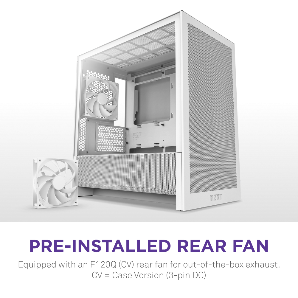 - Pre-Installed Rear Fan: Includes one F120Q (CV) fan at the rear to provide efficient exhaust airflow straight out of the box. CV = Case Version (3-pin DC)